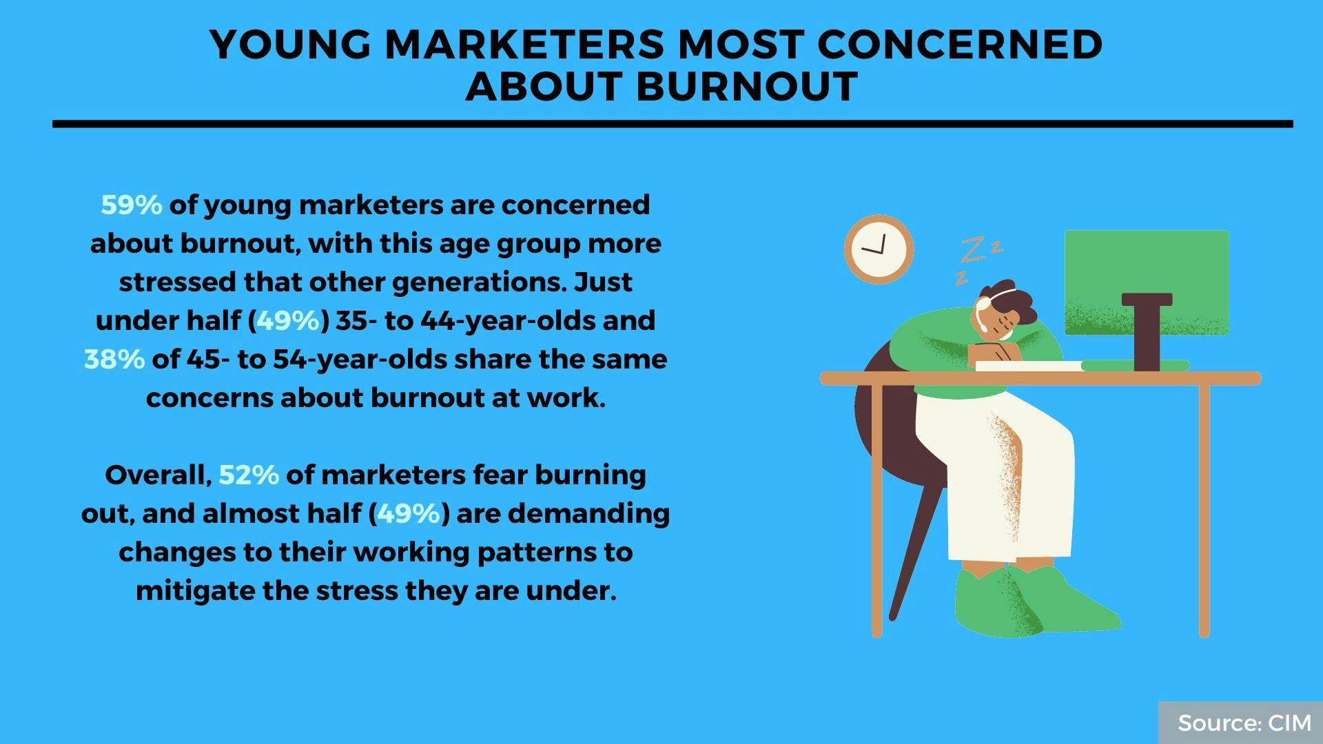 Overall, 52% of marketers fear burning out, and almost half (49%) are demanding changes to their working patterns to mitigate the stress they are under.